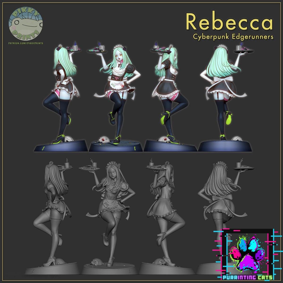 Bring Maid Rebecca to life with professional-grade precision. Printed by Purrinting Cats Garage, this premium resin model kit is made for collectors and painters who expect exceptional quality. Produced in 16K ultra-high resolution, every model captures razor-sharp detail for a satisfying painting and display experience. Each kit is hollowed for lighter weight and easier handling while maintaining strength and crisp definition. Models arrive unpainted, unprimed, and unassembled, giving you complete control over finishing and presentation.